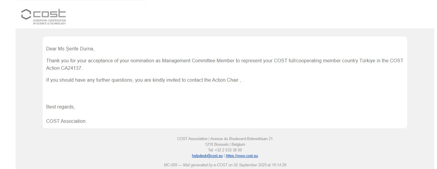 Merkezimiz bünyesinde görevli Öğretim Görevlisi Doktor Şerife DURNA COST Action CA24137, “Literary multilingualism and social transformations in superdiverse societies (MultiLiLiTrans)” adlı projede TÜBİTAK’a yaptığı başvuru sonucunda Türkiye’yi temsilen yönetim komitesinde yer almaya hak kazanmıştır.Hocamızı tebrik eder,başarılarının devamını dileriz.